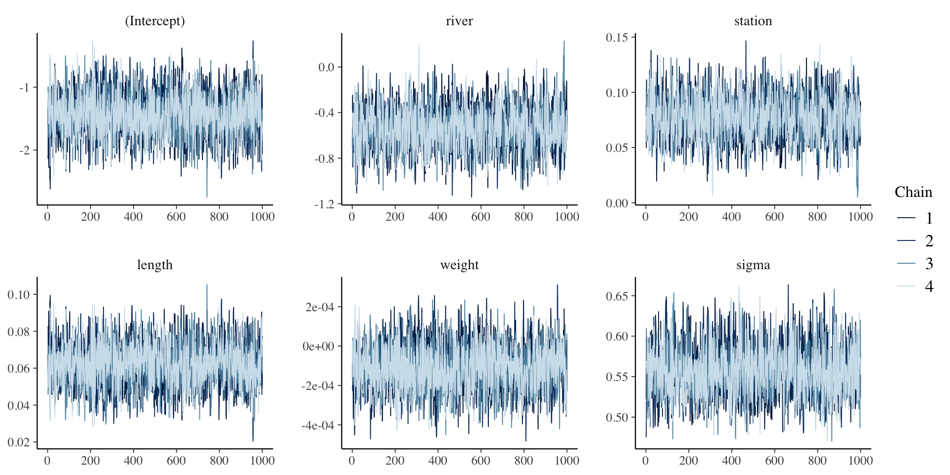 [1] "(Intercept)" "river" "station" "length" "weight"